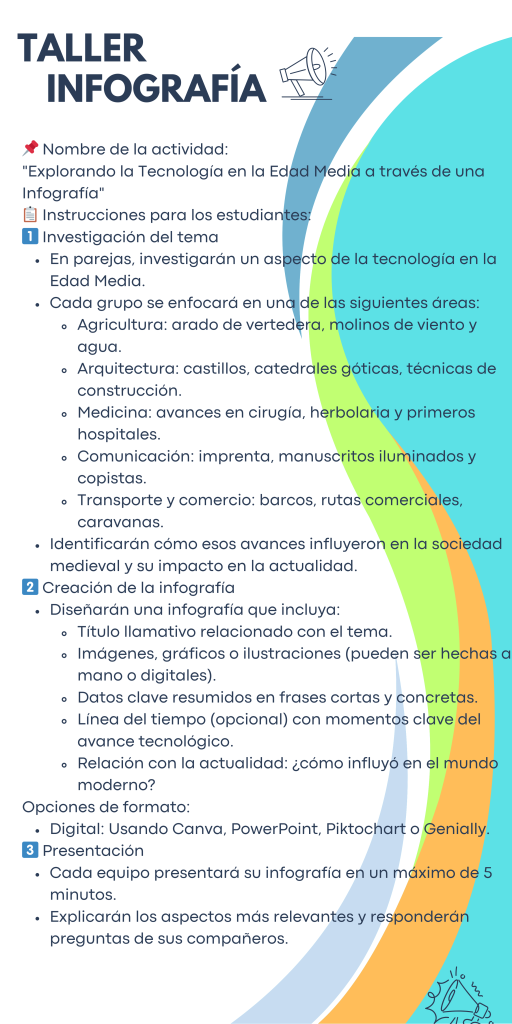 Como subtemas se trabajará lo siguiente: Introducción al invento, Contexto histórico, funcionamiento del invento, impacto en la sociedad medieval, evolución del invento, influencia en la actualidad.